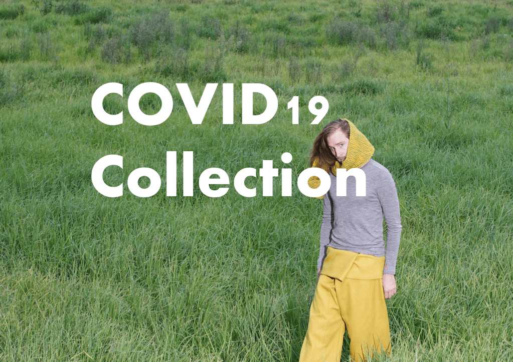 The COVID19 Collection was produced in collaboration with my partner Adam, who created two pairs of fisherman’s pants. One pair is made out of a fabric called Gabardine. Gabardine was first invented by Thomas Burberry, founder of Burberry Fashion House. Gabardine was used by polar explorers in 1911. The other pair is made of curtain material.
